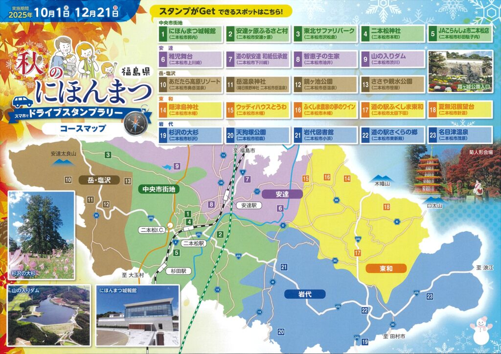 また、 スマートフォンの位置情報使用しスタンプを集める「にほんまつドライブスタンプラリー」も開催中です。
