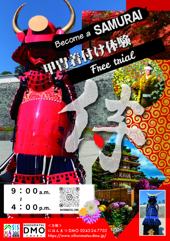 にほんまつDMOは、昨年好評であった「甲冑着付け体験」を今年も実施いたします。